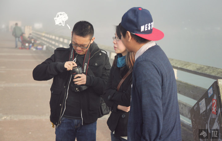 Half way through the dock (I’m guessing), Kevin noticed a few dust particles in his view-finder. He was frustrated.