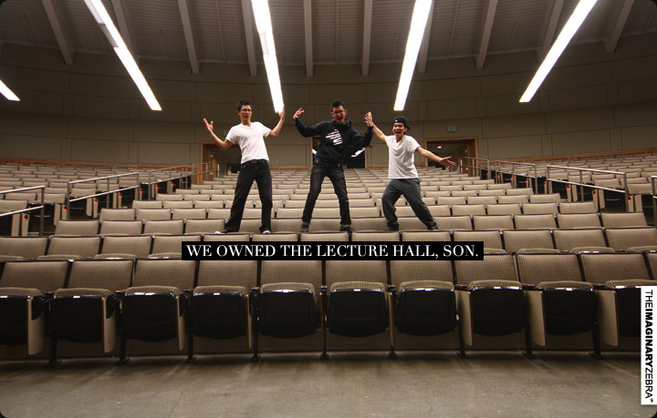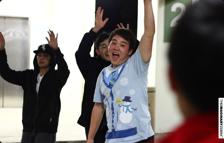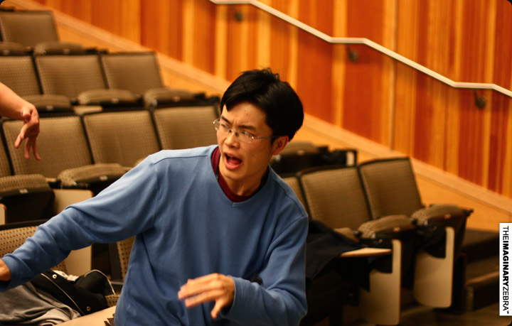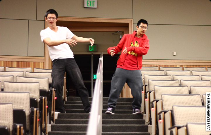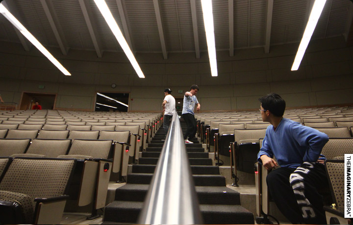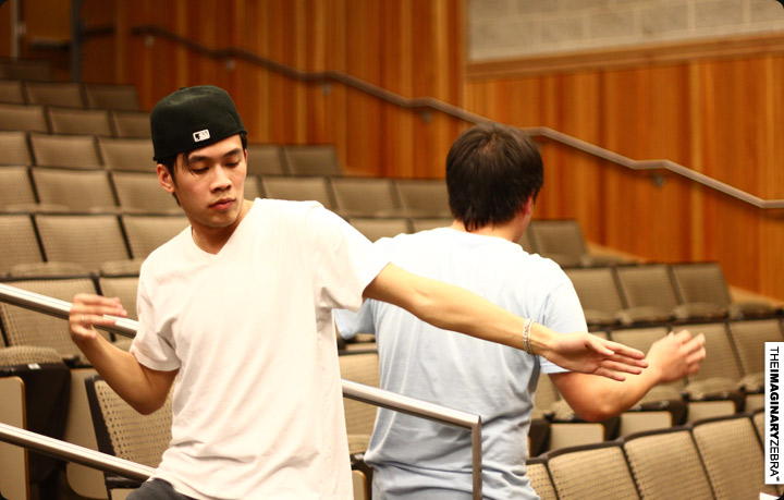 Now back to practice. All met up at 9 in Sci Lec 123 for the rehearsal – made sure we get the distance, timing, atmosphere right. Session was pretty intense.