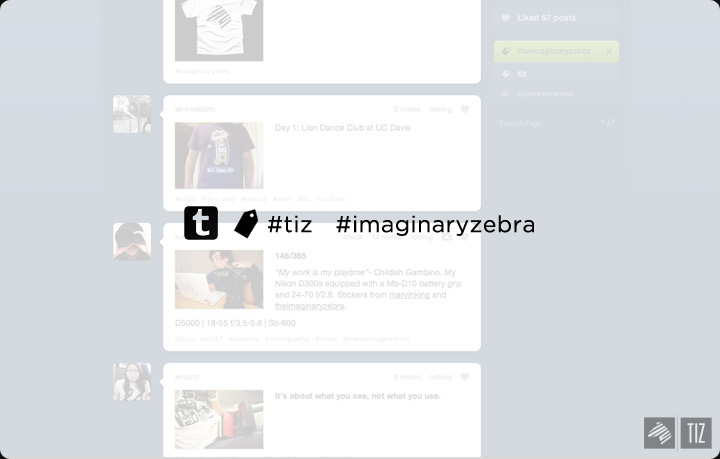 ↑An easy way for us to stay connected. Tag your tumblr post with “TIZ” or “theimaginaryzebra”.