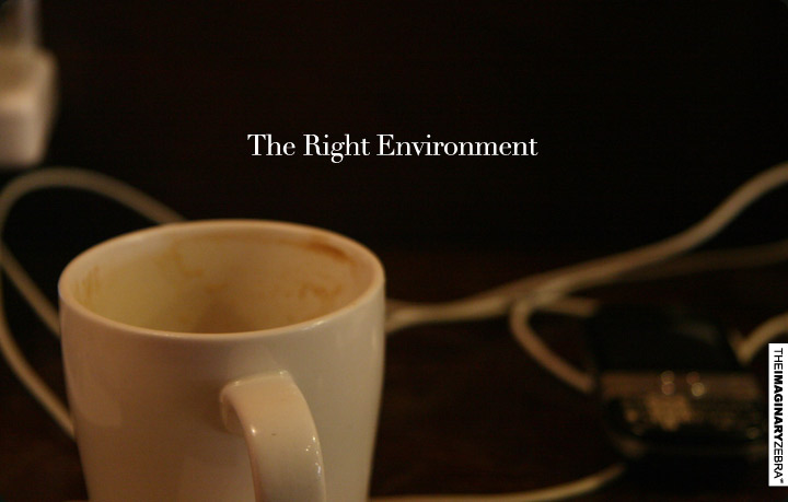 I figured that we have list of attributes we look for in the right environment, whether it’d be quiet, cool artistic inspirational posters on walls, or surround by hardworking people. But I realize that the list would end up becoming constraints, that we rely so much on the environment we can’t work well when not being in the right one.