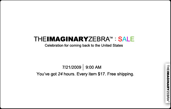 It feels good to be back. For the occasion, you’ll have 24 hours starting 9 AM on 07/21/09 to get any item for $17. First come, first serve, so mark your calender.
