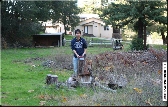 Cody’s uncle, Michael, brought us to the back of the house with a few axes.
