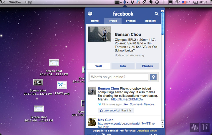 It made my life easier – Instead of constantly having a tab open in the browser for my email, it adds an icon in the top bar so you can have instant access to your mail and facebook updates. It also alerts you when there’s new mails or facebook notifications.